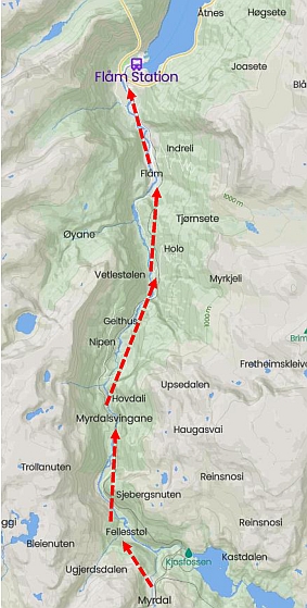 There is not a lot of information out there about some of the beautiful villages that the Flam train passes on its way down the valley. The above village is called Blomheller and is a little over half way to Flam. I can only presume that the concrete path running through the village is part of the bike trail down the mountain.