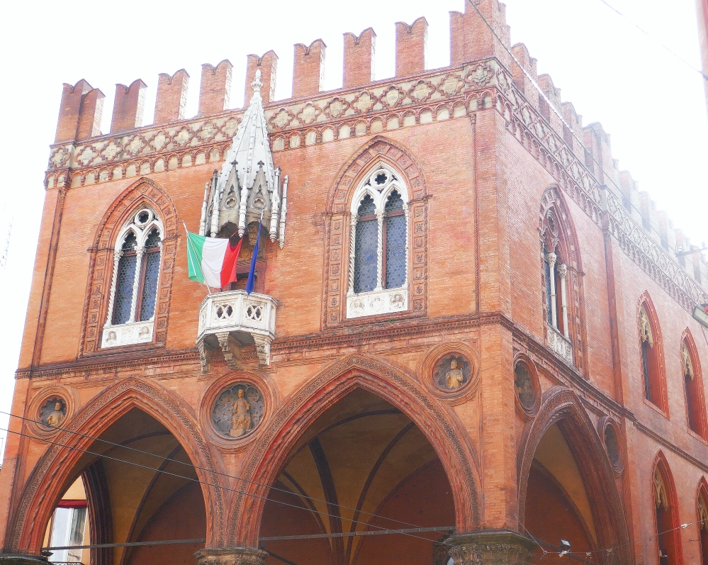 The building in the background of the students gathering in the photo on the right above is called Palazzo d’Accursio and is the Town Hall of Bologna. In the centre of the façade of this building there is a statue of Pope Gregory XIII who is most famous for having commissioned the Gregorian Calendar. He was born in Bologna. It was installed in 1580 and remained uncontroversial until Italy was taken over by Napoleon’s invasion of Italy at the end of the 18th century. The city council knew that it would be destroyed by the French so before the issue came up, they disguised the statue with a mitre and a crozier and the locals now referred to it as a statue of St Peter. It was returned to its original appearance in 1895.
