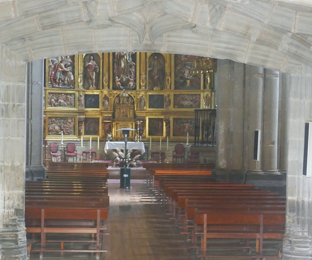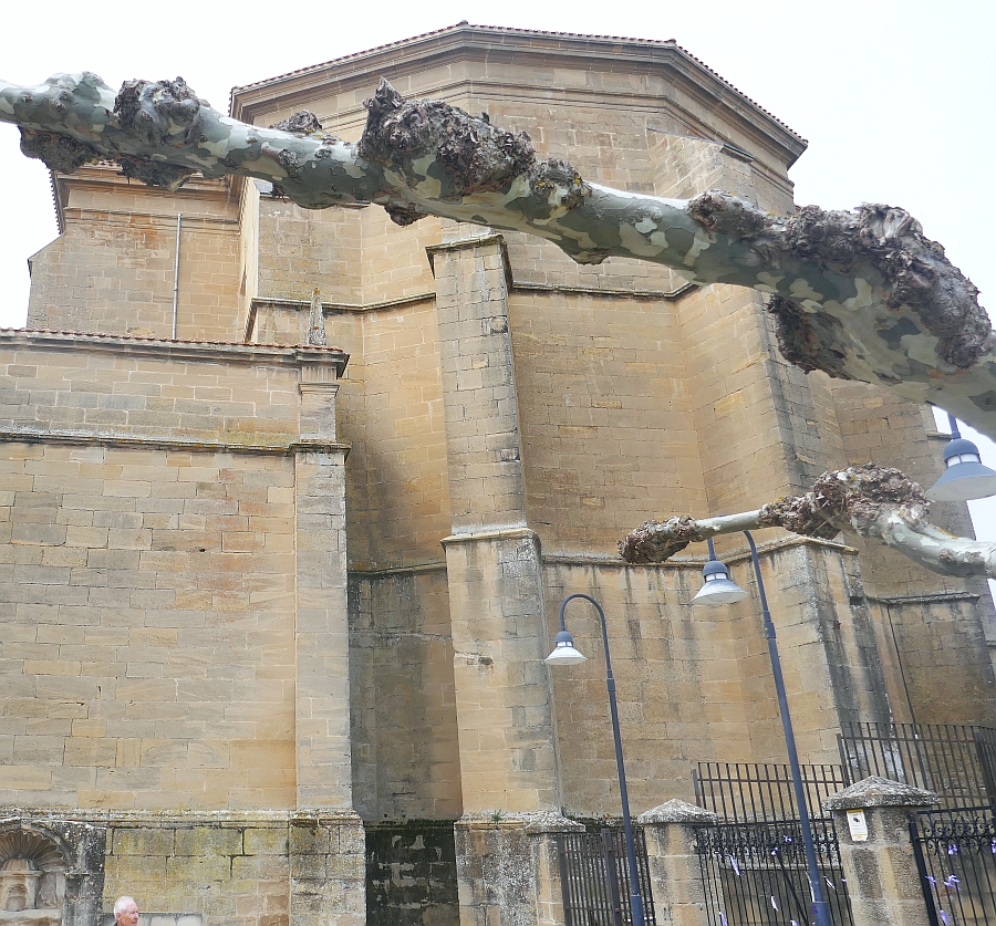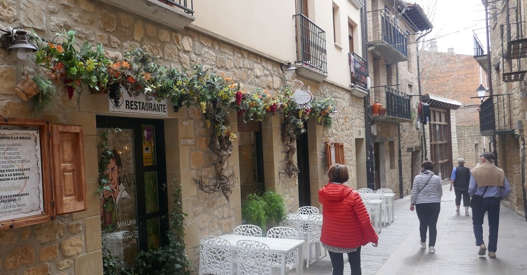 After the most unusual wine-tasting of our lives in the tunnels under Laguardia, we headed back to the open-air for an extended walk around the town. There appeared to be two local churches in this hill-top town and our walk took us in the direction of the second church on our itinerary, the Church of Santa Maria de los Reyes (‘Reyes’ translates as ‘Kings’.) We hadn’t heard much of the Knights Templar on our journey around Spain so far. They were a 12th century organisation of Knights who were a military order who fought in the crusades for the recapturing of Jerusalem from the Muslims. Apparently Santa Maria was once a monastery of this order of knights. Like the Church of St Juan at the other end of town, it had originally been built as a Temple-fortress. A referral to the map at the start of this blog shows that this church is almost at the other end of this walled town.