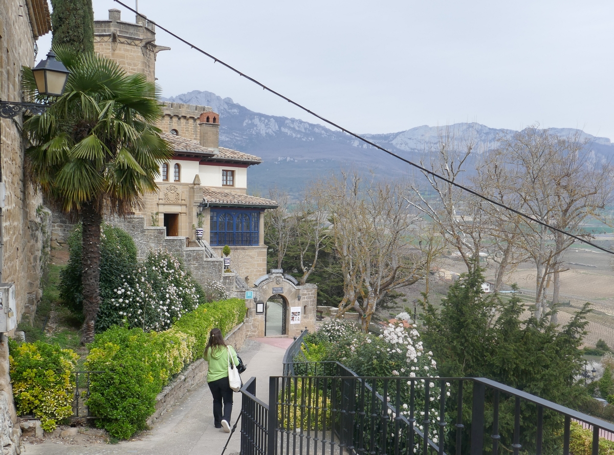 From the Church of Santa Maria, we headed down the alleyway beside the western wall of the town, heading for the southern end of town where a hotel lunch was waiting for us. Along the way we exited through the western gate (The Gate of Paganos) to a lookout area that was sited just outside this gate. The views over the farmlands outside the town were very impressive. The photo below is of the western wall of Laguardia taken from the lookout.