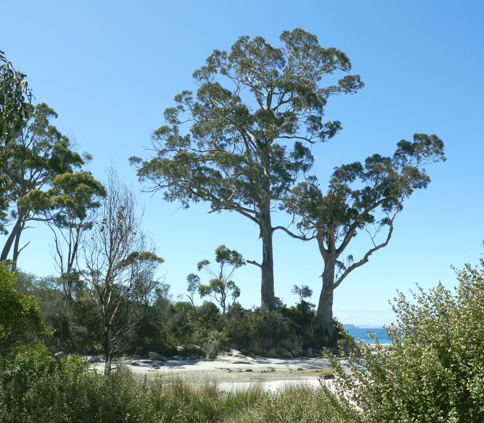 From the Bligh Museum, we then walked over the road to Two Tree Point at the mouth of Resolution Creek. This a very significant spot in Australian history and so has been listed on the Tasmanian Heritage Register. It was here that Tobias Furneaux (1773) and James Cook (1777) replenished their supplies of fresh water before continuing on their Pacific Ocean voyages. William Bligh also visited here in 1788. One of the amazing aspects of this story is that the artist with Bligh at the time, George Tobin, painted an image of Two Tree Point and the similarity between his water-colour and today’s photos of the site appear to suggest that little has changed at this spot. This would make the two eucalypts on the point aged around 250 years old.
