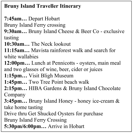 APPENDIX 1: Itinerary for our day on Bruny Island.