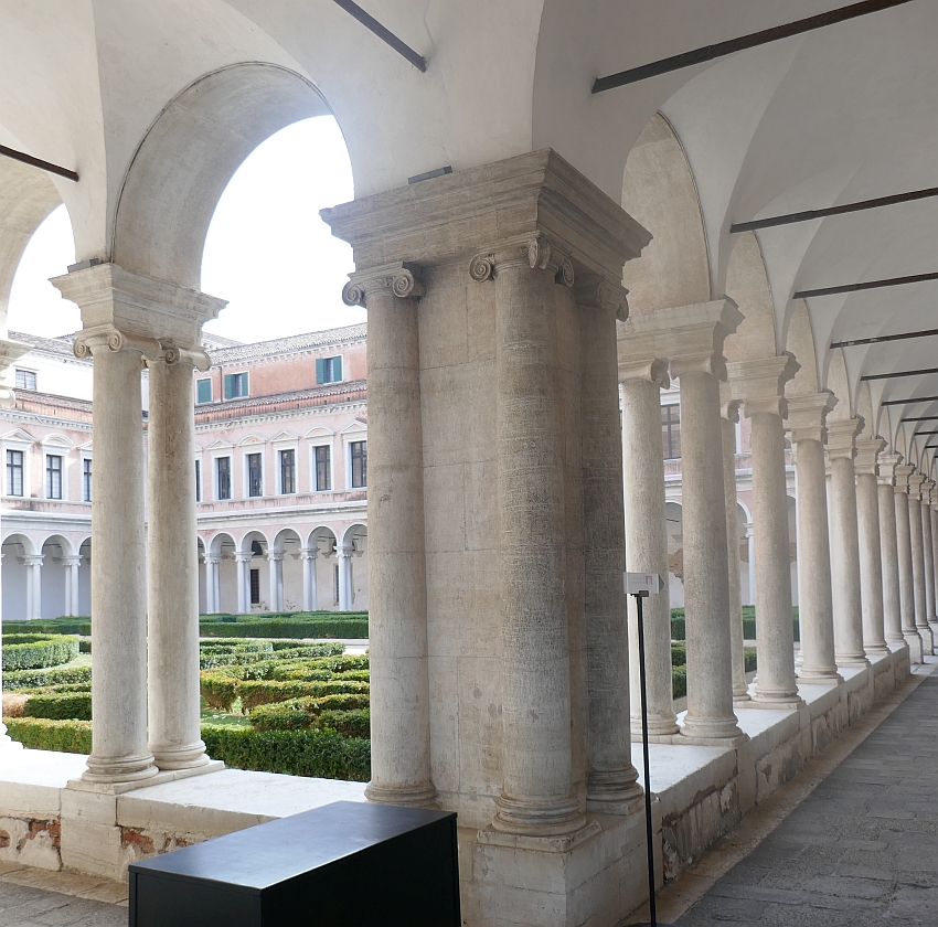 The small island of San Girgio is not just the site of the church of San Giorgio Maggiore. It also houses the George Cini Foundation which is a research centre for humanities studies and developing cultural heritage. A poster nearby to the doorway to the labyrinth explained that apart from the above activities it cared “ for an inestimable heritage of artistic, literary, musical and archival treasures” in its library.
