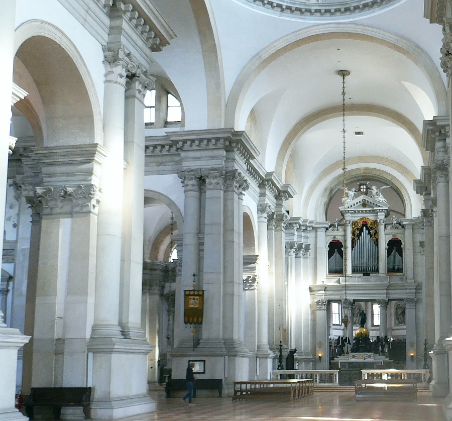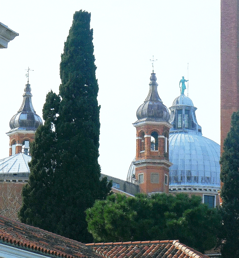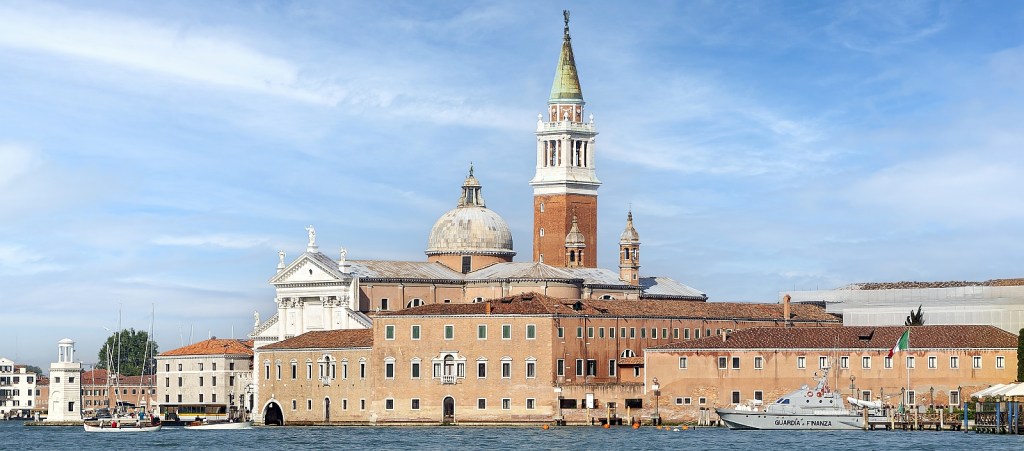 The aerial photo above of San Giorgio shows the huge campo in front of the white marble façade of the church where my ferry deposited me. The presence of two beautiful churches across the canal from Saint Mark’s Square adds just another amazing feature to a trip to this centre of Venice. Perhaps Edward Foster in his famous novel, ‘A Passage to India’, is a little over the top when he writes, “…but oh those Italian Churches! San Giorgio standing on the island which could scarcely have risen from the waves without it, the Salute holding the entrance of a canal which, but for it, would not be the Grand Canal!”