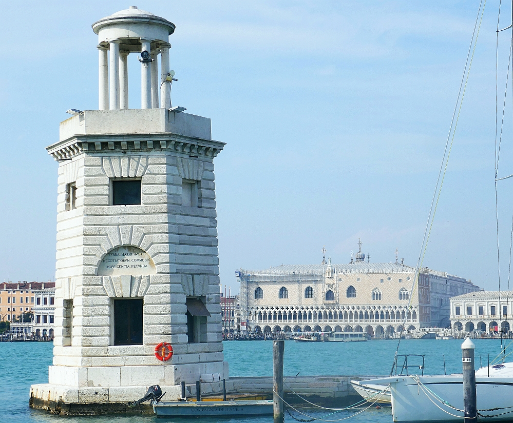 - A view of the lighthouse on San Giorgio, looking across to the Doge’s Palace in the background.