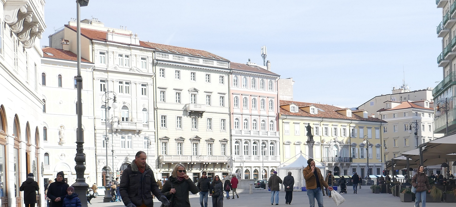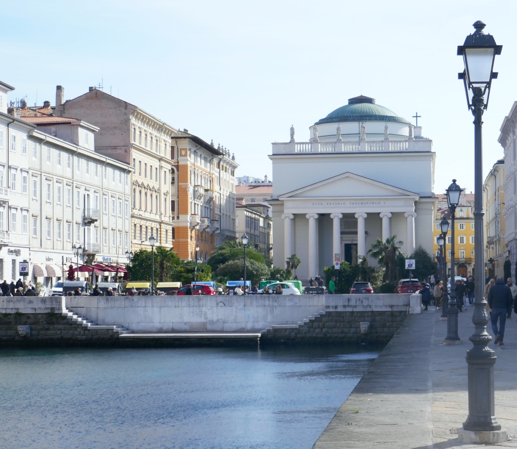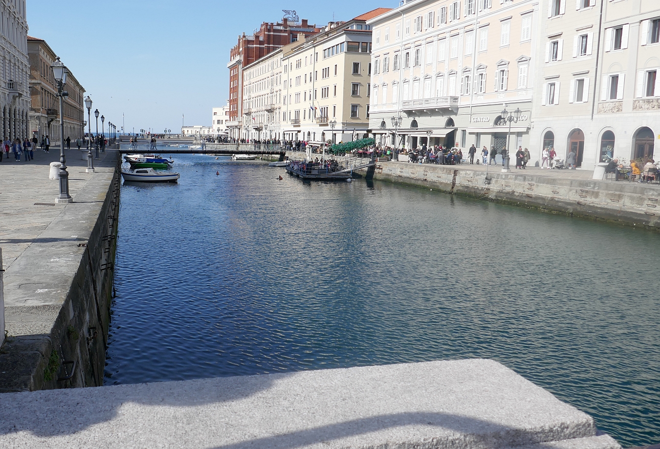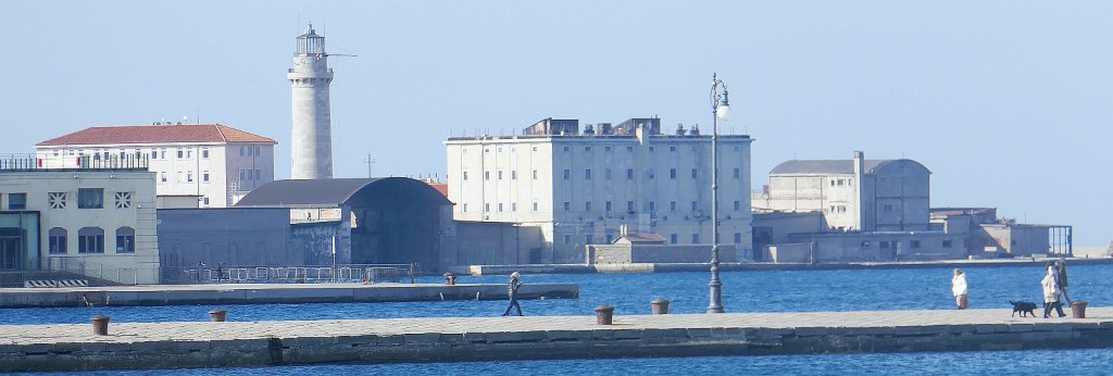 I had examined a digital map of Trieste before my journey there and it looked like the centre of the city had Adriatic sea-views not far from the train station. I assumed that there would be city-centre direction signs or even a map available in the train station to get me started. I ended up doing a circumnavigation of the streets around the station with still no inkling of the direction of the city centre. I decided I could smell the sea-air so I began to walk towards what looked like port buildings and followed a street that had decaying warehouses on either side. To my delight as I walked out of this street, I could see the Adriatic shoreline ahead and I knew that the Trieste city centre couldn’t be too far way.