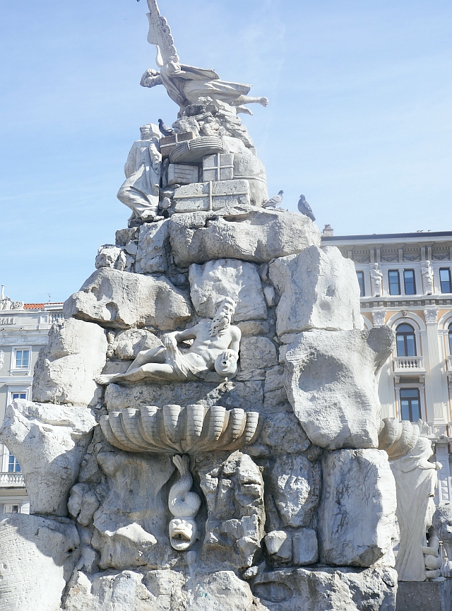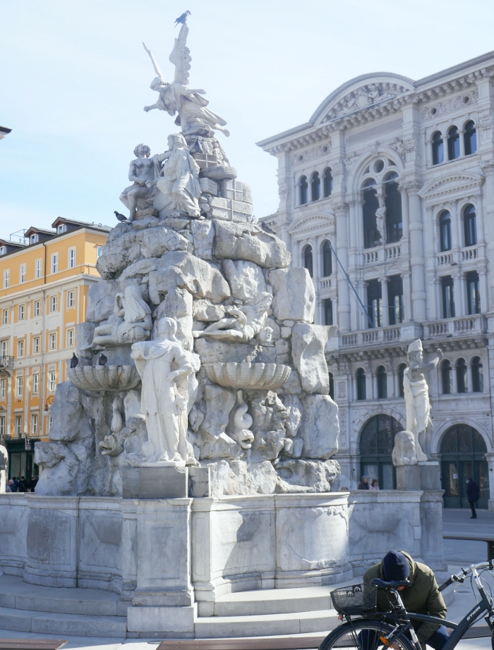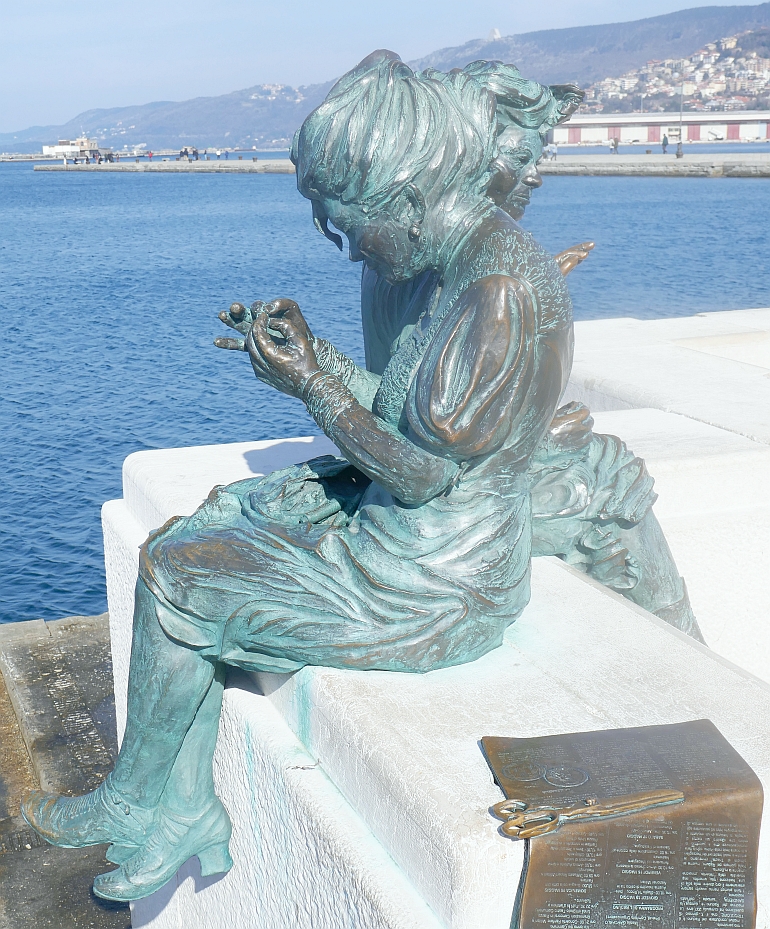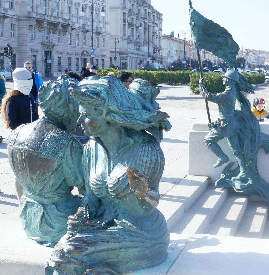 A little further along the shorefront is the ‘Royal Stairway’ (Scala Royale) that is a set of steps coming up out of the water and at the top of them are a series of gorgeous bronze statues. One of the statues represents a Bersaglieri, an Italian Soldier with a flag to remember the landing of the Italian Army in November 1918. The other statues are of Trieste girls who at the end of WW1 had been sewing tricolour flags for the celebrations.