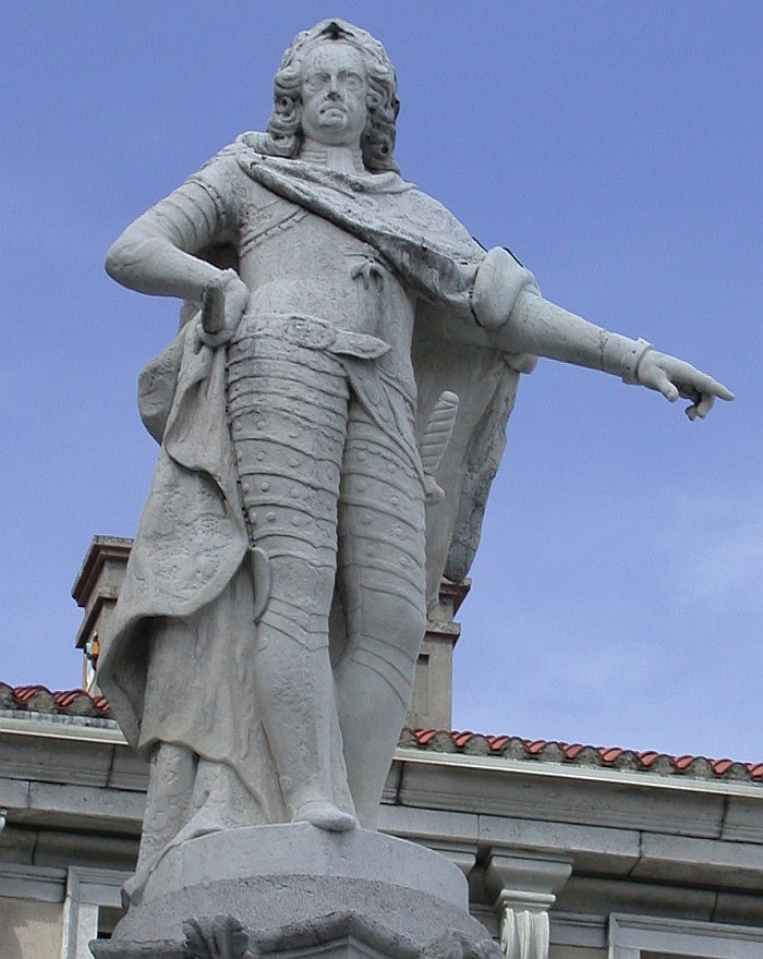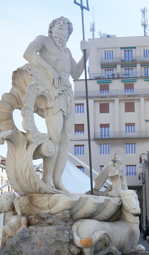 The long association between the Austro-Hungarian Empire and Trieste keeps being emphasised by the number of statues of Emperors that have been erected in this city over the centuries. The next one we encounter is Emperor Leopold I (1658-1705), the second longest ruling Hapsburg Emperor. He is installed on a pylon further along in Piazza della Borsa as it curves round to merge with Corso Italia.