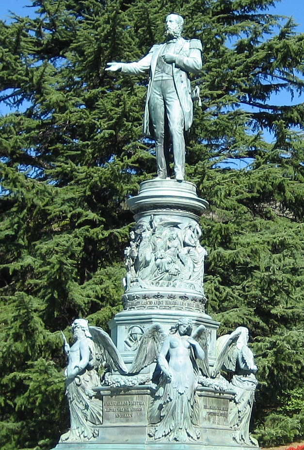 As you would expect of a piazza titled Unita d’Italia, there were a few prominent sculptures of prominent leaders from the past. The first one I inspected was the tall pylon down in the corner of the square that held a statue of the Hapsburg Emperor Charles VI (1711-1740). In the image on the left below, he is pointing to the sea where he established a free port. The statue was erected in 1719 when he visited Trieste.