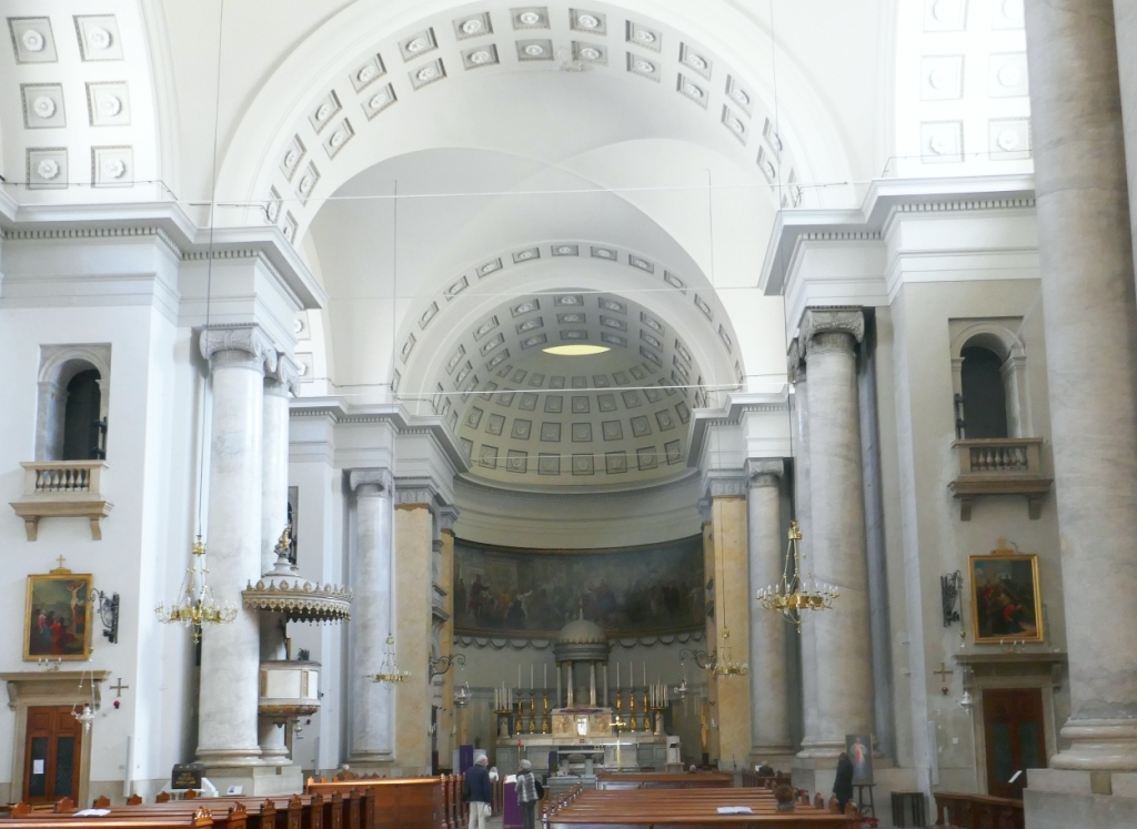 From the end of the Grande Canal, I walked up towards another large church further up the street in a section of Trieste called Borgo Teresiano. This structure was the City’s largest Catholic Church and is called the ‘Church of Saint Antonio Taumaturgo’, built in the first quarter of the 19th century. The design of the front of this church reminded me of the stock exchange building seen earlier. Rather than having a four column portico, this one had a six column frontage that made it look more like a Roman Temple than a Catholic church. However once I entered and had a look around, the inside of the church looked like a traditional Roman Catholic church.