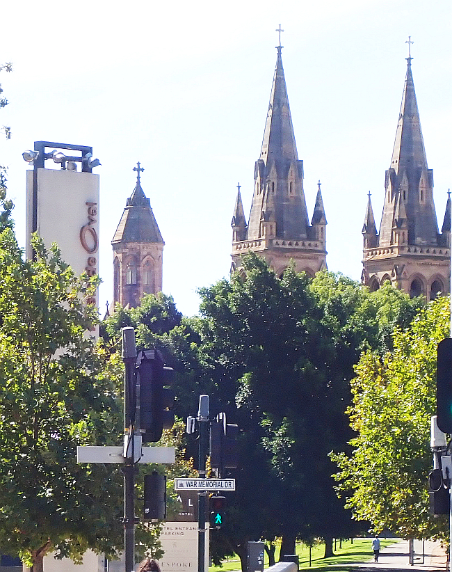 North along King William Road further along from the Adelaide Oval is St Peter’s Cathedral. Its foundation stone was laid in 1869 from a design that originally started with an architect in England whose main influence was French Gothic architecture. This is why visitors can see a similarity with the Notre Dame in Paris in the western front of the building. It was originally meant to have been built on land within Victoria Square but the process of making such a land grant ran against local opposition who pointed out that Adelaide’s main square was a public reserve and so the Supreme Court directed the Anglican Church to look elsewhere for their cathedral site. It had been a long day already so on our arrival at Adelaide Bridge we decided we would head back to our hotel rather than make a visit to St Peter’s Cathedral.