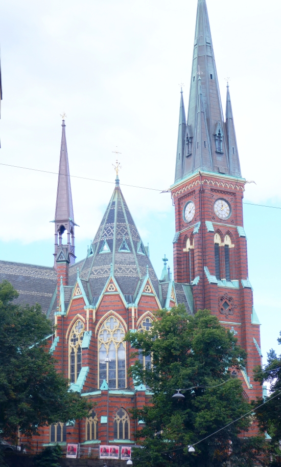 We spent a fair portion of the afternoon wandering the Natural History Museum but eventually we had to agree that enough was enough so just before information overload set in, we departed this lovely museum and headed out on the long walk back to our hotel. By now we were starting to get the hang of the city of Gotheburg so we were able to choose a direct route back to the Haga Church (left below) and from there on it was straightforward. We crossed over into the parks that lined the canal that wound its way around the centre of the city. We passed rose gardens on our way and passed one more striking sculpture that deserved a close inspection. It was a 19th century piece called the Knife Wrestlers and was apparently pretty popular in its day so there are multiple copies of the sculpture around the cities of Europe.