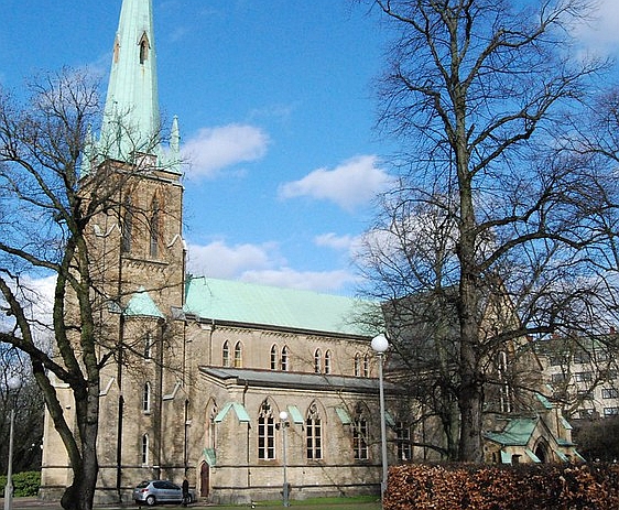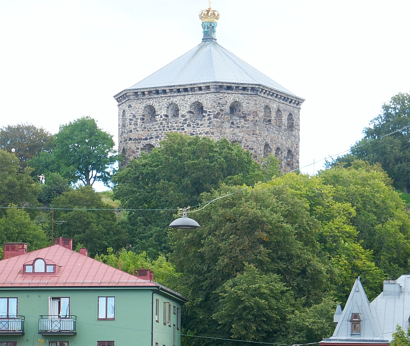Along the way we were able to take a quick diversion by turning right and having a closer look at the beautiful Oscar Fredriks Church than the distant one we achieved up on the Skanson Kronan hill. Walking further up Linnegaten we also got a nice view back up the hill where the fortress tower stood above the houses of this area.