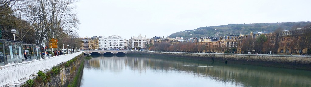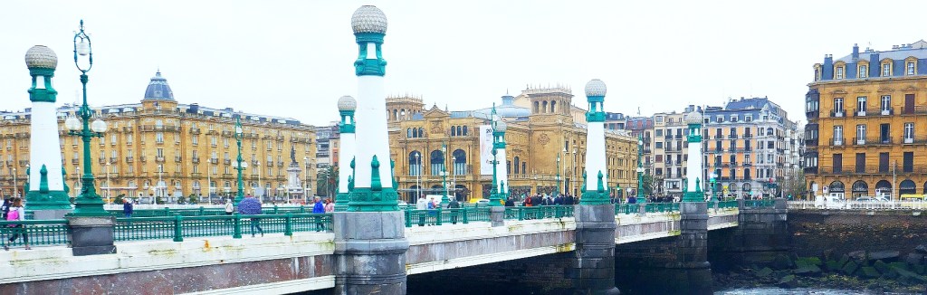 We let the student protesters get ahead of us as they crossed the bridge and headed into the old part of San Sebastian. We loitered on the Puente de Zurriola bridge and admired the architecture of the buildings that lined the street that followed the river down to the ocean.