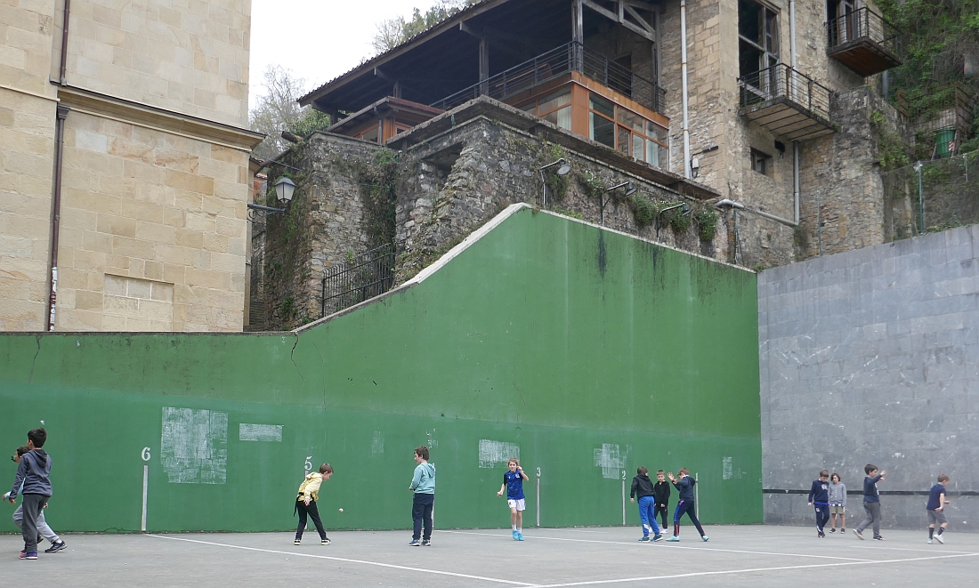 There was a small school next door to the Church of Saint Mary and the children were out playing handball in the large concrete playground attached to the school.