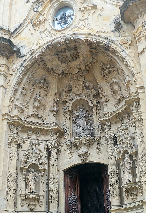 Our last major site to visit for the morning was the Basilica of Saint Mary of the Chorus which was to be found at the edge of the old city before the land gave way to Mount Urgull in the background. This parish church was completed in 1774. Its main entrance was another masterpiece of sculptures as can be seen in the photo to the right below.