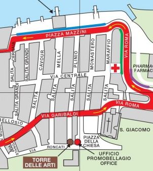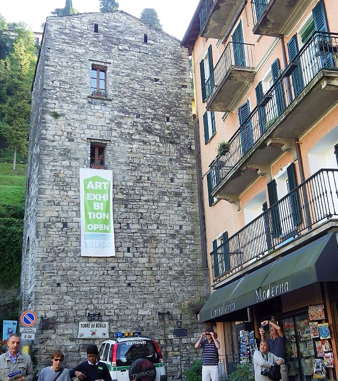 On the other side of the square is what looks like another 12th century watch tower that has been transformed in the 21st century to an arts centre. This tower, called the Torredelle Arti Bellagio, is definitely a remnant of the original defences of the medieval town. As can be seen in the image on the left below, this tower was in full Art Exhibition mode when we visited.