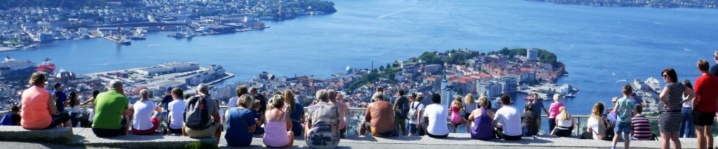 It was the views over Bergen City that were the most attractive features for us from our trip up Mt Floyen. We spent quite a bit of time moving around the amphitheatre style steps that enabled us to get view in all directions of the city below. For example, we were able to trace our morning walk around the city below; the view of the city’s lake and the four Art Museums/Galleries along its edge were an interesting sight.