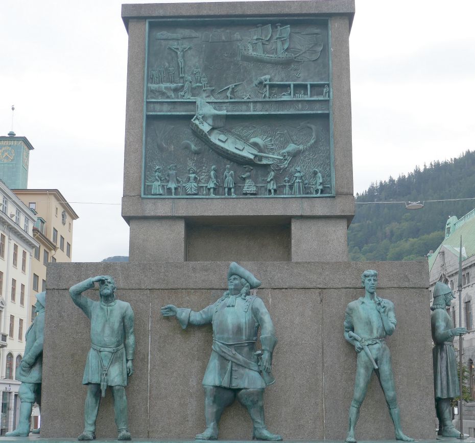 It was indeed a Sailor’s monument, designed over the years 1939-45 by the sculptor, Dyre Vaa and it was unveiled in 1950. “It comprises an artistic timeline of the city’s relationship with seafaring via exclusively male bronze statues, 12 in total. Together they afford a sculptural idealisation of the history of Bergen’s (and Norway’s?) maritime adventures and exploration, trading and commerce, through a millennium.” (Courtesy: Howardwilliamsblog)