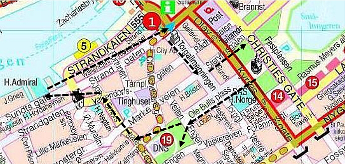 By the time I had finished my inspection of the grounds of the theatre, I realised it was time for breakfast back at the hotel, an event not to be missed. My morning walk had returned me to the top of the hill above the harbour so it was a quick walk back to breakfast after a very enjoyable early stroll around the centre of Bergen.