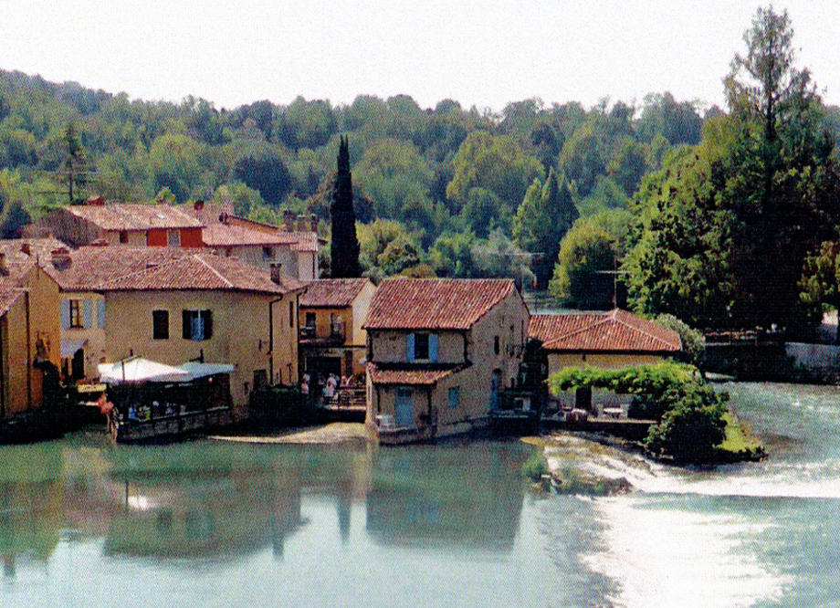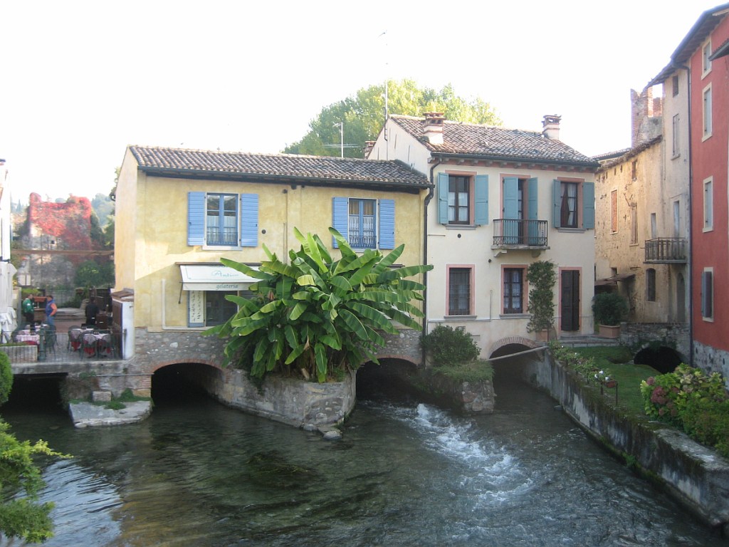 From the Visconti Bridge, we drove down to the village of Borghetto and found ourselves a car park near where we would be having our lunch. However we had plenty of time for a stroll around this small village built around and over the Mincio River. The image on the right illustrates how close many of the houses are to the river and I couldn’t help but ponder that it would be a fine line between having a great view of the water streaming past the windows and on bad days , the river river streaming through your lounge room.