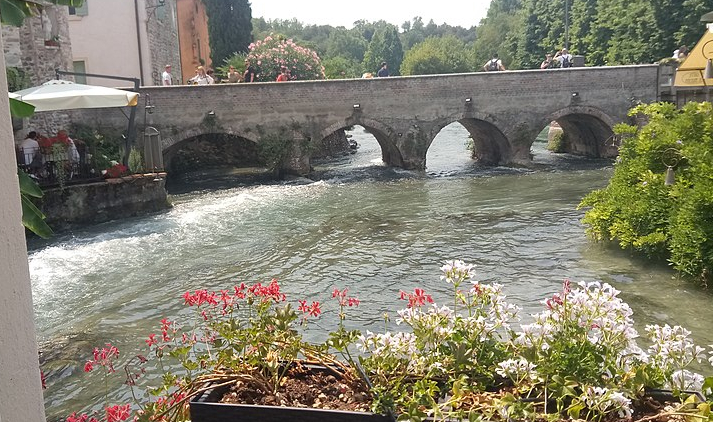It was our last day in the Veneto Region of Northern Italy and our main task for the day was to get to the train station in Verona to take us to Milan by late afternoon. Our tour operators decided that the perfect way to finish our 7 days with them was to take us to see a village for the morning on the way to catch our train. The village was called Borghetto sul Mincio (on the river Mincio), a hamlet of the larger urban area, Valeggio. It has made the list of one of the most beautiful villages in Italy. When people say that a village is built on a river, this usually suggests that the houses are built on the riverbank. At Borghetto, many of the houses are built over the river.