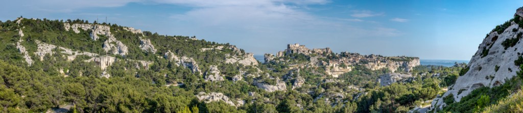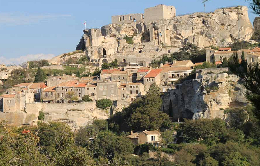 One of the great excursions you can take out from Avignon is to head south through the Department called Bouches du Rhone, the landscape that the Rhone River flows through on the way to its mouth (Bouches), south of Arles, where it flows into the Mediterranean. There are two fascinating places to visit on this stretch. The first one is just 25 kms from Avignon called Les Baux de Provence, the village’s name also being given to the mineral ‘Bauxite’ which was mined in the area for the last two centuries. The village and its associated castle are to be found in a small mountain range called Les Alpilles. The second half of the day would be taken up with a visit to Arles, 15kms further on from Les Baux.
