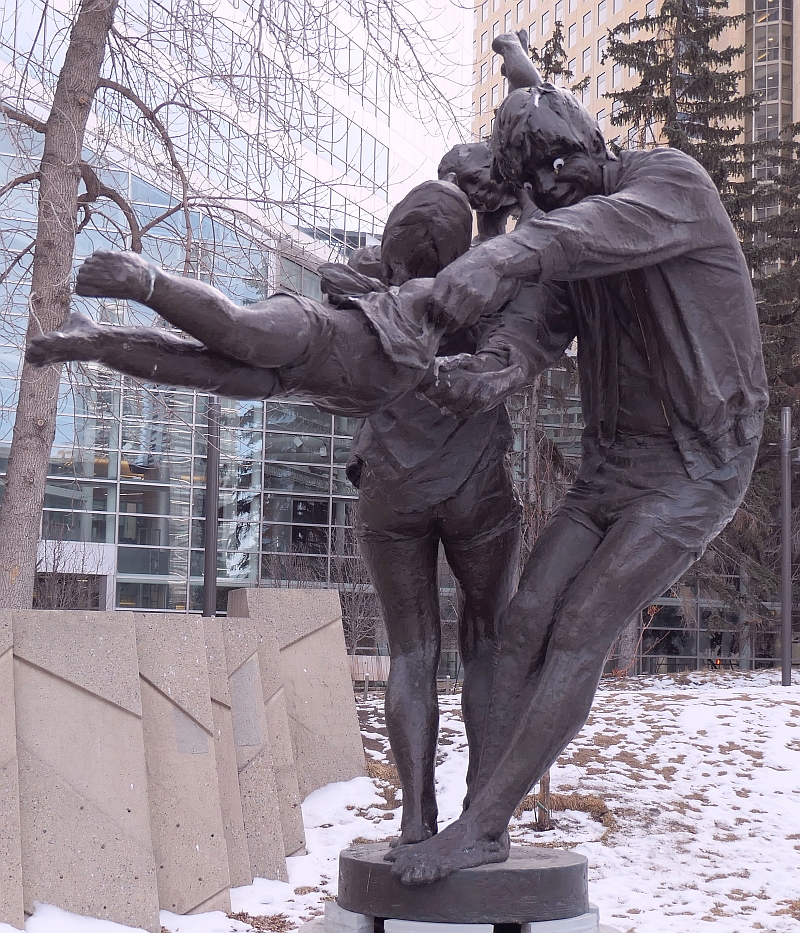 On my way back to my hotel after my long and productive morning walk, I was pleased to be able to jump on the light rail and get back to my accommodation for a rest. As I got out of the train over the road from the hotel, I noticed there was a curious looking statue in the park that was opposite the hotel so I decided I needed to have a quick look at it. It seemed to be an image of two parents whirling their child around in mid-air. I hoped the original child survived the experience because it looked like there was a lot of vigour in the efforts of the parents. If they had accidently let him/her go, he would have landed in the middle of the basketball court next to the statue where the local kids played their after school games.