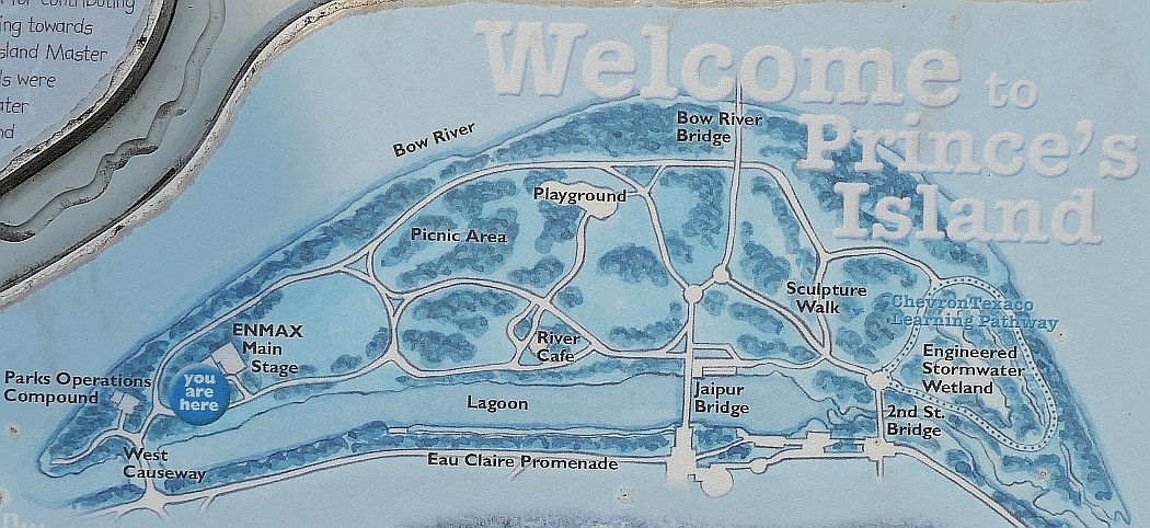 My next target for this afternoon’s walk was to walk back past the beautiful red bridge and check out Prince’s Island which was just on the other side of the Peace Bridge. One of the things I noticed at this time of day (a little after 4pm) was that there were a lot of walkers, Joggers and bikers out and about, enjoying the facilities that the city provided for them. It was one aspect of Calgary that I decided was very ‘livable’!