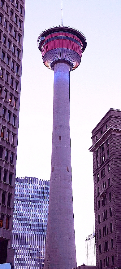 No doubt the Calgary Tower offers the best view of the city and you can see from the viewing platform the Rocky mountains in the distance and the plains stretching towards the east. It was originally called the ‘Husky’ tower after one of the oil companies who were part of the original joint venture when the build started in 1967. Four years later the name was changed to Calgary tower as a tribute to the citizens of the city. In 1987 the Winter Olympics came to Calgary and so a gas fired cauldron was installed on top of the tower to serve as the Official Olympic Flame. One of the things I shouldn’t have been surprised at was the regular views of the tower that I noticed from all sorts of angles around the city. The photo on the left below was taken out past the Calgary Stampede grounds and still the tower signaled its presence beside old local houses and skyscrapers.