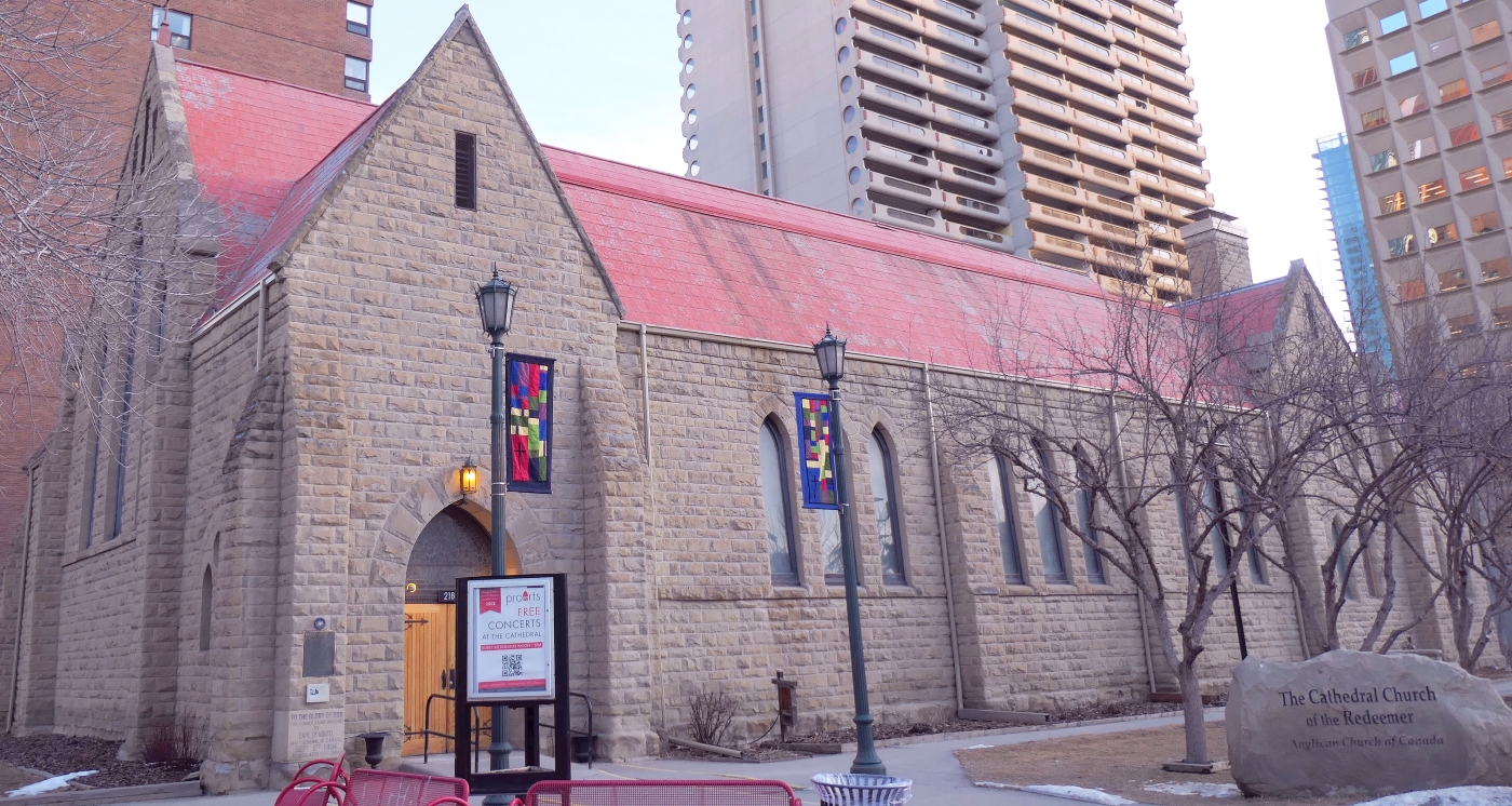 By this stage of my walk I had made it back to Calgary’s 7th Avenue, the inner city’s transit corridor. I had noticed over the other side of this road a large church and given I hadn’t seen any significant religious buildings so far, I wandered over the road to have a look at the Cathedral Church of the Redeemer, the Anglican Church of Canada. It was an attractive brown stone church and the trees planted along its street side provided the Black squirrels with plenty of play space.