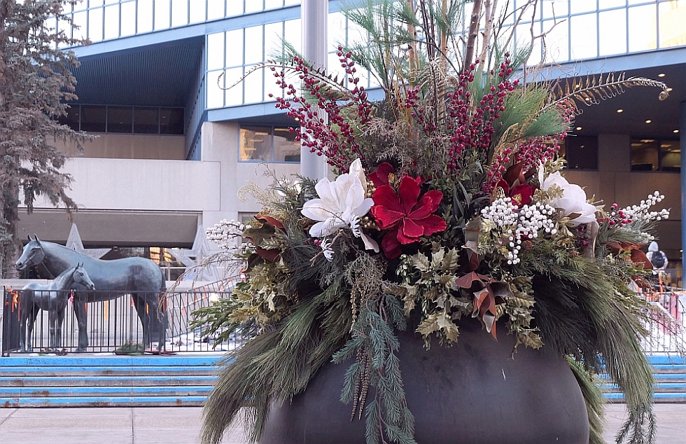It was an interesting walk along the footpath at the front of the Calgary Municipal Building where up to 2,000 civic administrators work. The area where the steps of the building were located seemed to be cut off by a low fence where a series of horse statues were placed. They were donated to the council by a local philanthropist.