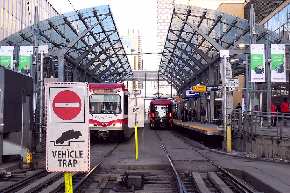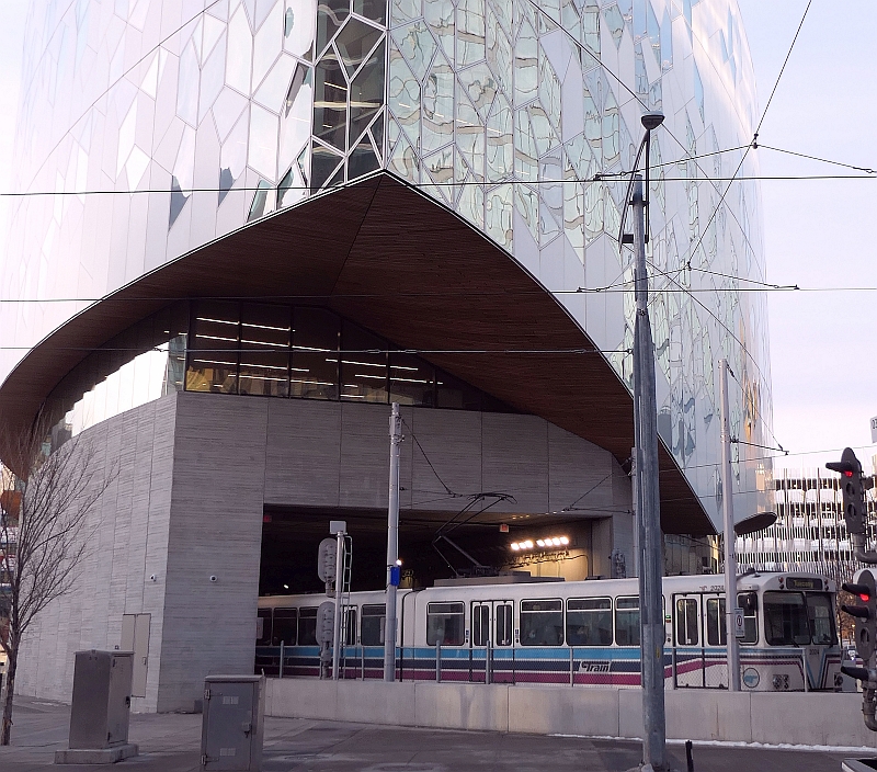 Just around the corner from the town hall there is the last station on the city’s transit line where no ticket is required to get on or off the train. The photo on the left was taken looking back from the pedestrian crossing in front of the station. I was quite taken with the concept of the vehicle trap sign that presumably was meant to warn any driver that turning left off Third Street SE was a recipe for disaster. Their car would get stuck in a ‘trap’ and possibly be run over by a train that failed to see the car on its way round under the City’s new, amazing library building!