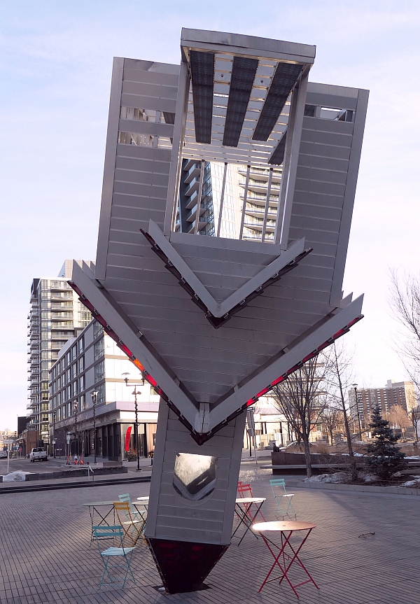 After checking out the Calgary Tower and the buildings around it, I had arrived at First Street SE where I found I had discovered another very interesting section at the heart of Calgary. I had arrived at a large recreational area of the city with a lot going on. It is called the Arts Common and a brief sign was displayed just before I wandered into the area that summed up the purposes behind the precinct. For example, situated in the Arts Commons was Theatre Calgary, Calgary Philharmonic Concert Hall, Mahika (Engineered Air Theatre!) etc