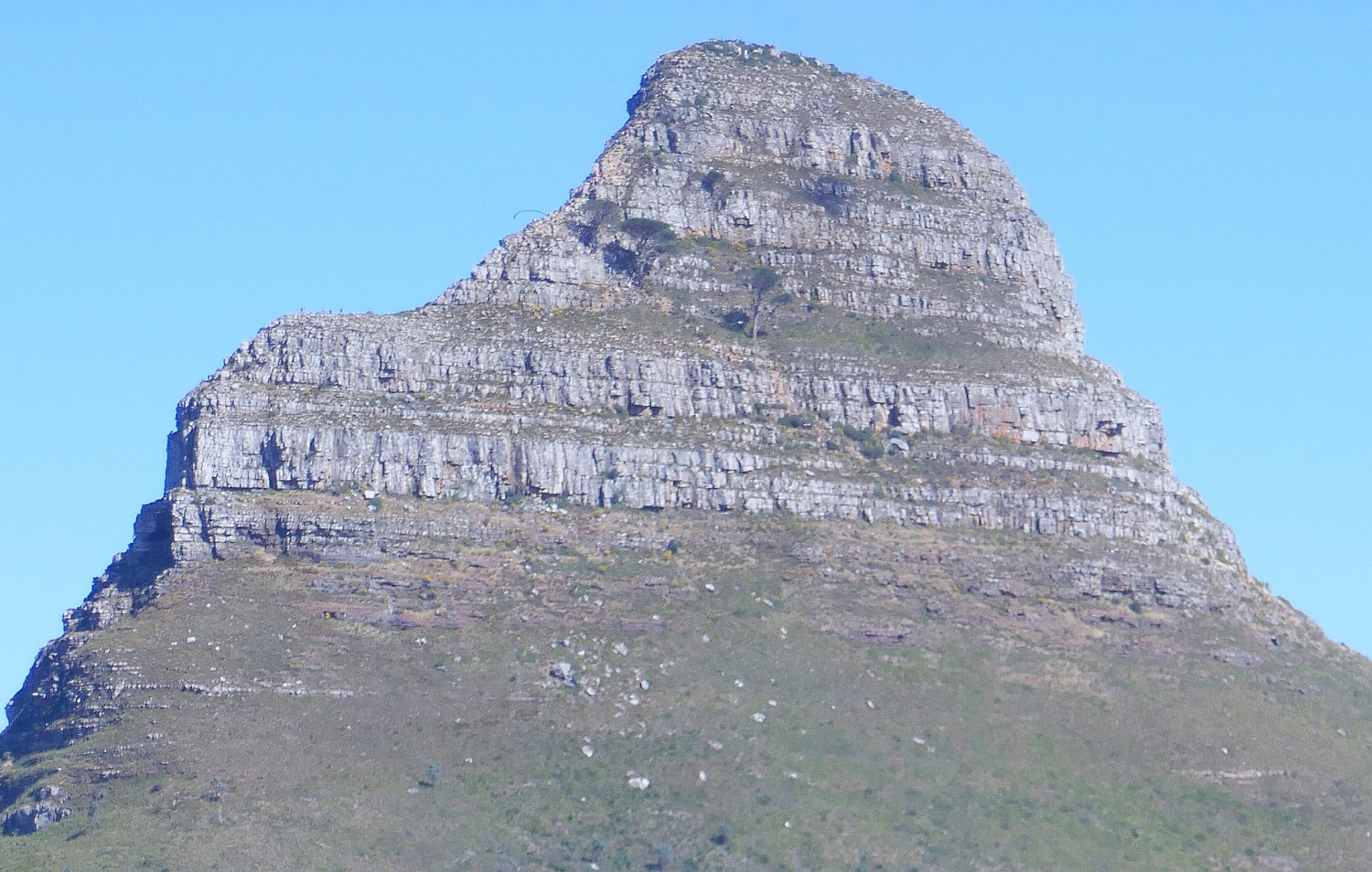 We had booked a full day’s tour for our second day in Cape Town which started off with our guide driving us to the city’s famous world heritage site, Table Mountain. The photo on the left below is of Lion’s Head which is part of an extended green space that runs across the city’s landscape behind the suburbs on the Atlantic Ocean coastline. Our guide told us that Lion’s head was a popular place for local joggers and walkers who regularly take to the road up this peak on weekends. On the right below is a view of Table Mountain from where the cable cars start their journey up the escarpment to the top of the mountain.