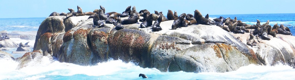 It didn’t take long to reach Duiker Island and I had to admit that I have never seen such large numbers of huge seals congregating together on small, rocky islets that made up the larger ‘island’. The ferry slowly floated its way along the various rocky out-crops and we were able to watch some seals coming and going while the majority of the seals basked in the sun before it was there time to do some morning breakfast hunting.