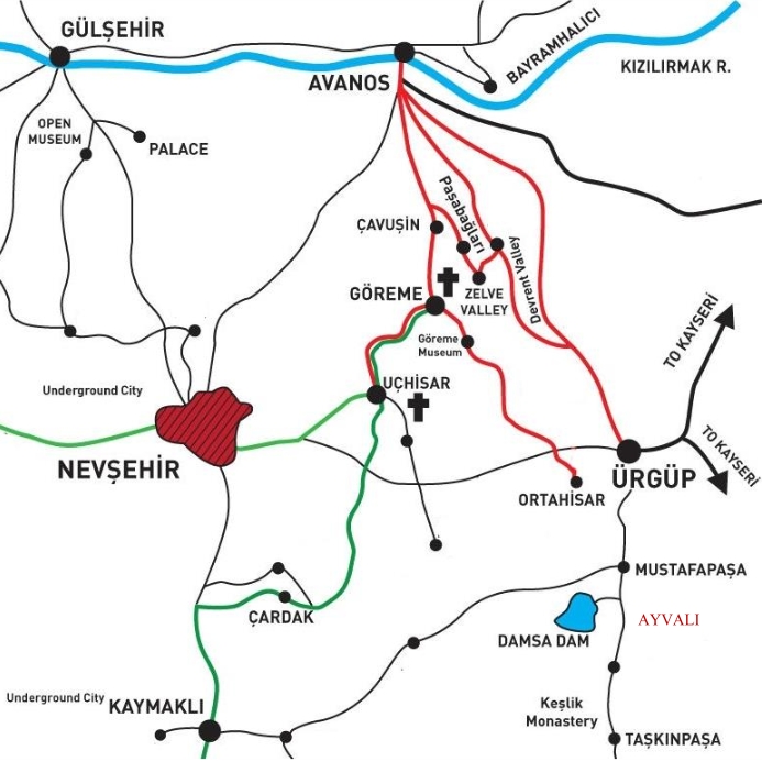 - Ayvali Cave church : Attached to Gamirasu Hotel, a 12th century cave church with frescoes.