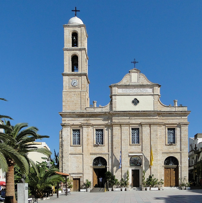 I have drawn in the 3 red arrows on the previous map to indicate destinations on our tourist journey. The arrow on the right of the map points to the San Dimitri Bastion which visitors can stroll up and get a view of the harbour and the city spread out before them. The middle arrow points to the site of the Cathedral of the Presentation of Mary. The last destination for our afternoon stroll up the hill of Kastelli was to the Municipal Market of Chania. The third arrow on the map points to where the market building is today and illustrates that three and a half centuries ago, this part of town was a large bastion, a section of the wall that defended the citizens from the invading Turks. It also illustrates that the town was surrounded by the canons of Ottoman troops as by the end of the Cretan War, Chania was the ‘last’ bastion of defence against the new conquerors of Crete.