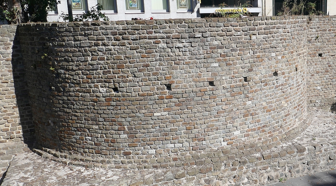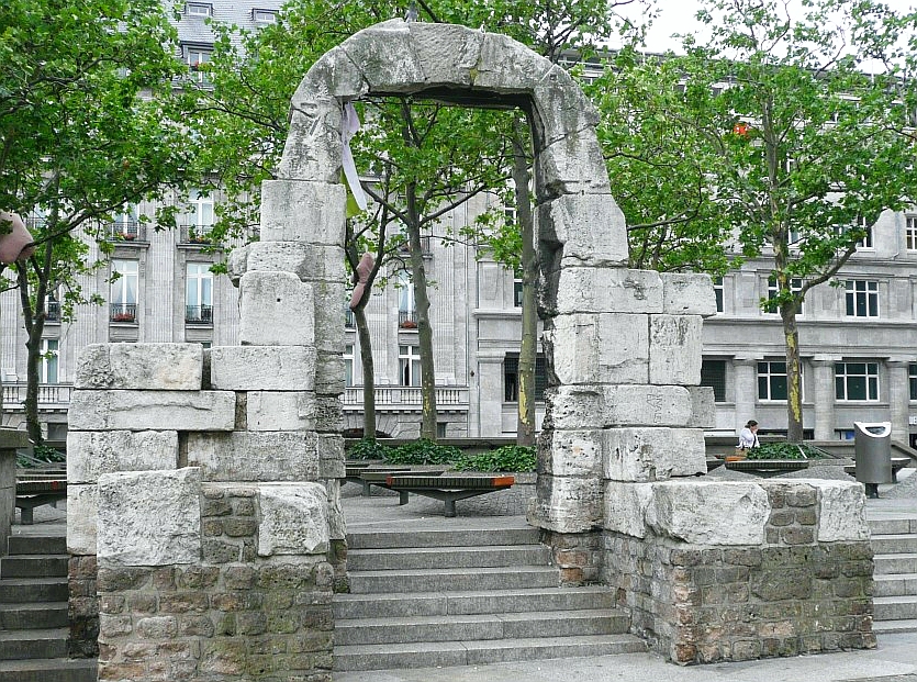 We met our guide at Starbucks next to the railway station. In his introduction he introduced himself as an Icelander who had spent many years in Cologne as a translator of German books into the language of Iceland. He seemed a very interesting chap and he certainly new his Cologne history. We walked over to the cathedral and had a chat about the Dom before he took us further on to the first major remnant of Roman Cologne. It was the remains of the Roman North Gate, built when the colony was founded in 50 CE. It can be found today still on the paved platform around the Dom. The locals refer to the original Roman colony as CCAA. This stands for Colonia Claudia Ara Agrippinensium. The Cologne Cathedral was built over a section of the Roman colony. In the car-park underneath the Cathedral can be seen the exposed foundations and the lower part of the Roman city wall.