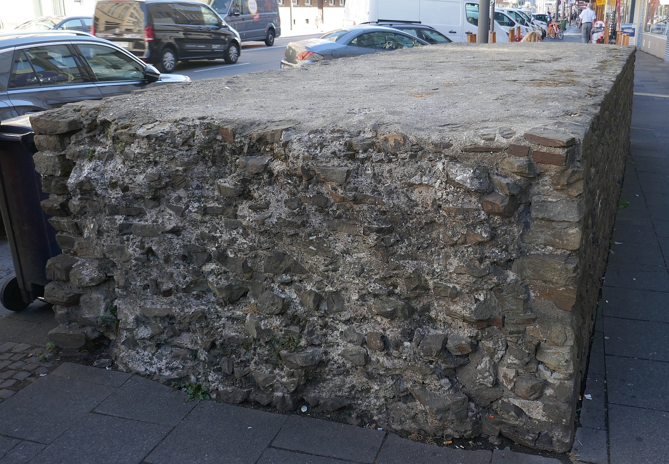 It wasn’t much further along that we came to a bronze map embedded in the footpath, not far from a remnant of the Roman Wall. This map made it clear that the original Roman colony has basically been built over by the changing faces of Cologne over the centuries. The bronze map also shows that the area of today’s Cologne that sits along the banks of the Rhine River (eg. Heumarkt) were not part of CCAA. The map below shows that during the time of Roman Cologne, there was an island in the river here that has subsequently been merged with the city without a canal separating the pieces of land.