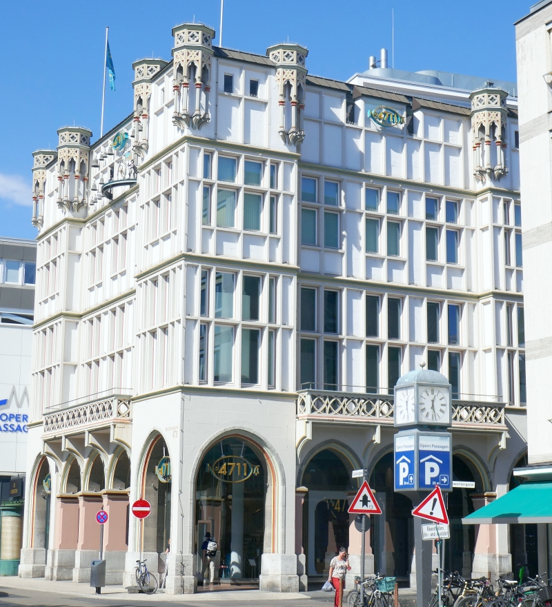 We returned to Neven-Dumont-StraBe and continued along to our next left turn onto Glockengasse. Our destination was the headquarters of the perfumery, 4711. Our guide told us the curious story outside this establishment of Napoleon’s decision during his occupation of Cologne to introduce a system of house numbering to Cologne. The historicity of the image above right from the wall of the 4711 office is open to question but his fondness for eau de cologne has been attested. There is one theory that his stomach cancer found during the autopsy after his death may have been caused by his excessive use of products with too many “less than essential” oils in them as they can be very deleterious to human health. The postal number of the headquarters of this Eau-de-Cologne company is in fact #4, not #4711.
