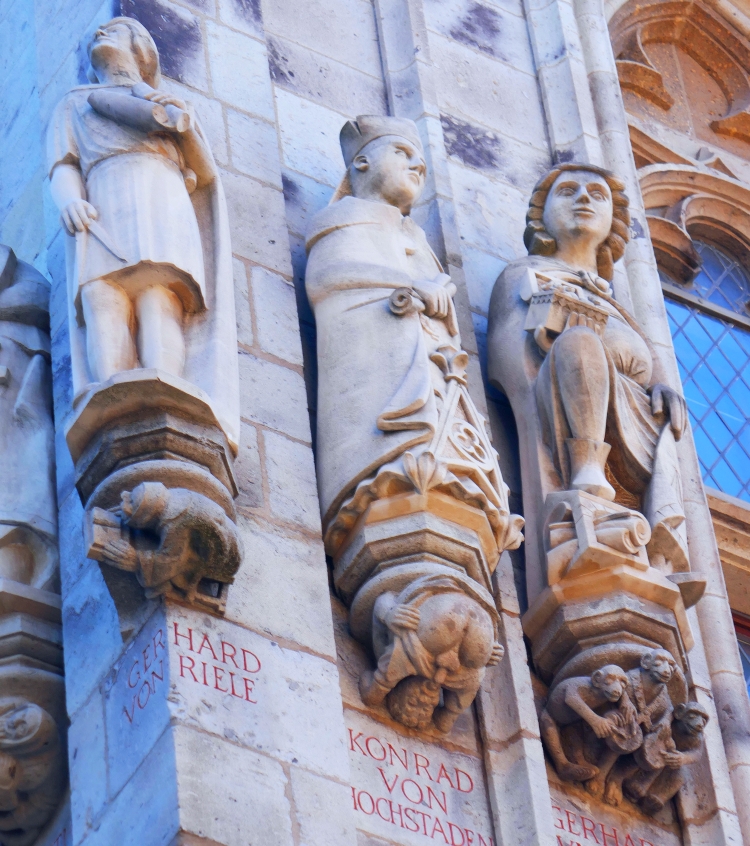 Our guide was mostly interested in showing us the statue of Archbishbishop of Cologne and kingmaker of the early 13th century, Konrad von Hoch. The Archbishop made many enemies during his life but our guide believes that the insulting ‘grotesque’ placed underneath his statue was due to the tradition of the masons hating him because he had raised a significant tax on beer in the city.