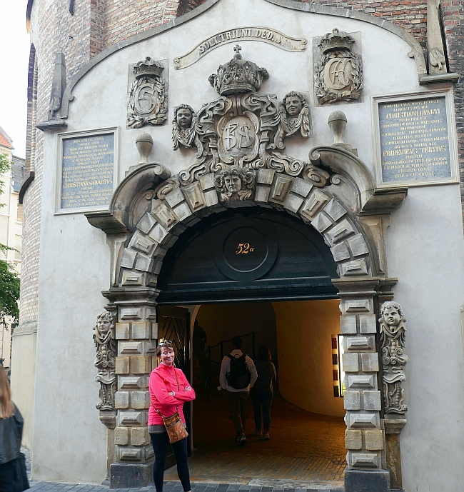 After our late afternoon beer in Hojbo Plads, we decided to head up the pedestrianised street called Kobmagergade which headed towards the Metro Station of Norreport. This was a very busy shopping street and it was well after 6.30pm in the early evening so there were lots of young and old people out enjoying both the weather and the stroll along this very interesting street. The main site of cultural and historical importance we encountered on this busy street was the Rund Tarn, the Round Tower. This tower was a project of Christian IV as astronomy was becoming of major scholarly interest in the 17th century and the famous Tyco Brahe was a favourite of the King’s for some years. Brahe (often more famous for his artificial nose!) had left Denmark by the time this tower was built. It was decided to merge the tower into the University of Copenhagen and it became part of a complex that included a student church and the university library. It was a very impressive sight as it emerged out of this busy shopping street in the early evening light.