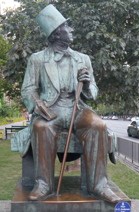 Apart from a school friend whose family had immigrated after World War 2 to Australia, the major Danish cultural contact I had experienced before visiting Copenhagen was the Danny Kay film, ‘Hans Christian Anderson”. For some reason the chorus of the main song from this film, ‘Wonderful, Wonderful Copenhagen,’ (see Appendix 2) has stuck with me for the last 55 years after hearing it while watching the black and white version of the movie on a quiet Saturday afternoon in the early 1960s. Han Christian Anderson was a prolific writer in most genres but it is his literary fairy tales that have become part of the “West’s collective consciousness, readily accessible to children, but presenting lessons of virtue and resilience in the face of adversity for mature readers as well.” (Wikipedia) I hadn’t noted that the main street that ran down beside the Rådhus Pladsen (town square) and the town hall was called H.C.Andersen Boulevard, apparently the most congested street in Copenhagen. Just around the corner of the Radhus on the boulevard, we met the man himself in all his cheerfulness, gazing over the road at the Tivoli Theme Park