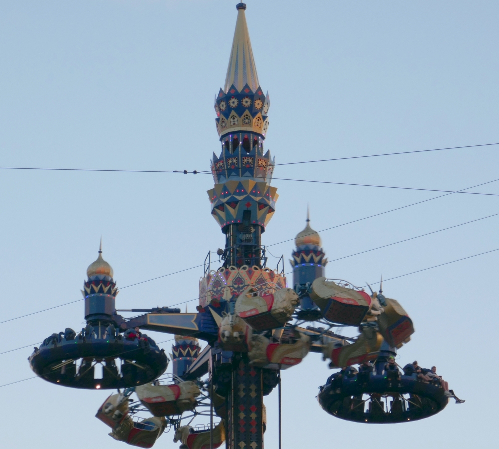 It was a very fading light as we walked down this famous boulevard and got a view of Tivoli Park and I decided that with more time in Copenhagen, I could be convinced to visit it. We spent some time on a corner outside the Tivoli Gardens watching the ‘Whirly Gig’ (on right above) swirling in circles, changing colours and rising up and down over the fence-line, accompanied by the background noises of laughing, squealing and yelling with fear that seemed to emanate from this complex but gorgeous device.