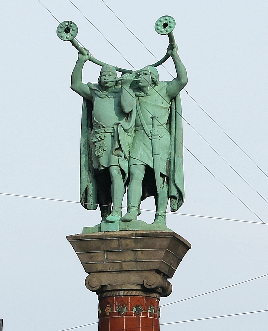 Perhaps the most confusing commemorative statue that we encountered on our evening walk was the 20 metre column that stood in the square outside the Copenhagen Town Hall, with two figures blowing strangely curved, horn-like musical instruments. It was called the Lur players and was constructed between 1911-14 as a gift to the city from the Carlsberg Foundation.