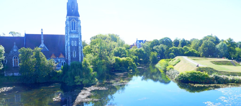 After our failed attempt to check out the Royal Cast Collection, we made our way along Esplanaden and then took a right turn into the parkland around the Kastellet. It is still surrounded by moats and we gained entry to the ageing fortress by a long wooden bridge over water with lots of waterlilies that hadn’t been disturbed by war since the 1940s. German troops landed in the harbour in 1940 and took over this citadel without much opposition.