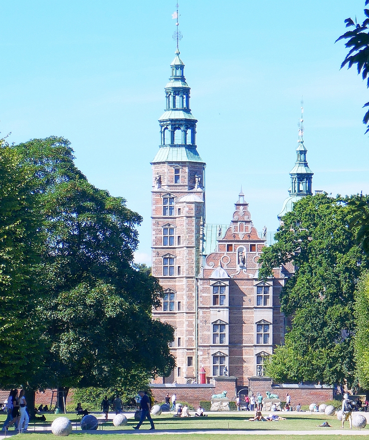 From here it was a direct walk down an avenue towards the amazing Rosenborg Castle. It is described as a Dutch Renaissance Style Castle begun in 1606 under the direction of Christian IV and was completed in 1624. It was originally designed as a ‘summerhouse’ but only used as residence for ‘Regents’ up until 1710 and then only rarely by the Royal Family. One emergency use as a royal palace was after Christiansborg Palace was burnt down in 1794.