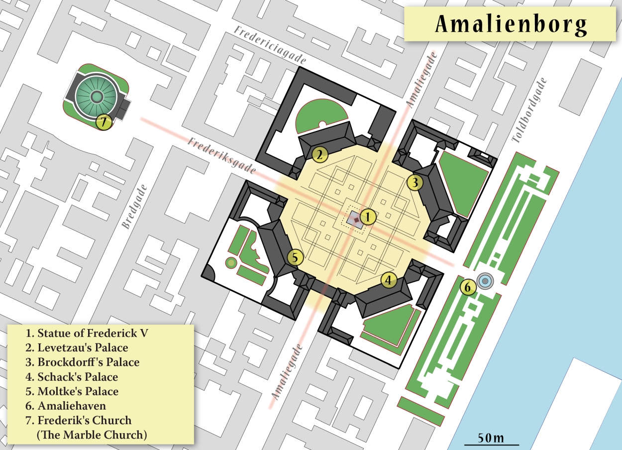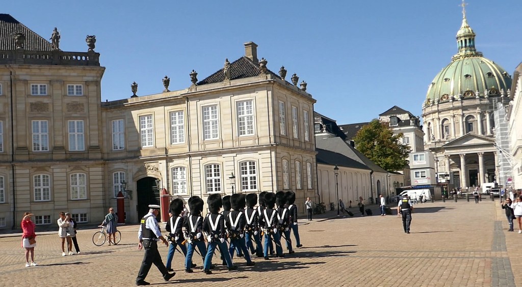 There appears to be quite a few palaces scattered around Copenhagen but Amalienborg appears to be the Buckingham Palace equivalent; it is the home of the Danish royal family but other similarities with the English Royal’s home are few; except perhaps for the changing of the guard process. While Buckingham Palace is one huge building, this Danish Palace consists of four separate buildings built around an octagonal courtyard with the obligatory equestrian statue in the centre of Frederick V (1723-1766). This palace was originally built for local nobility in the mid 18th century but the Danish Royal Family were forced out of their home when Christianborg Palace was burnt down in 1794 and so purchased this estate.