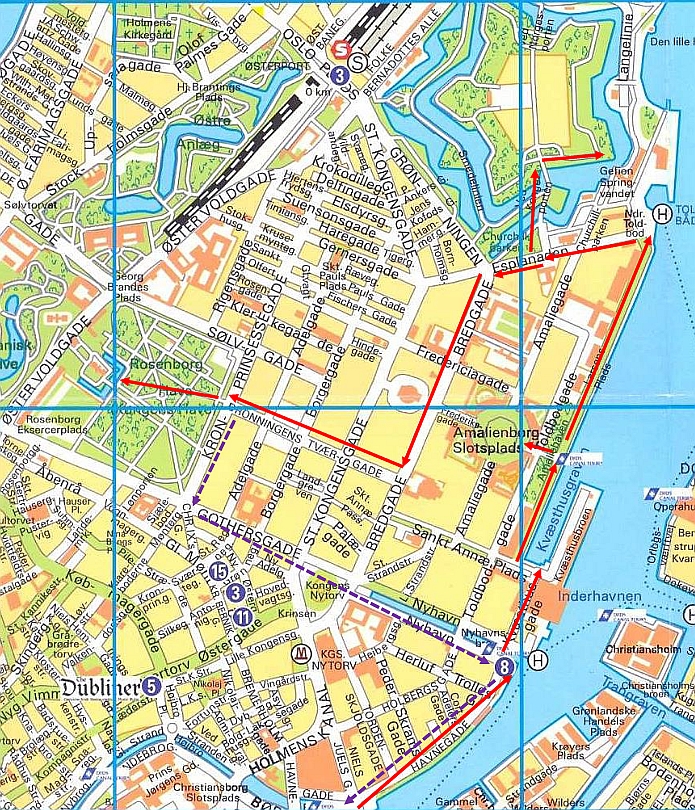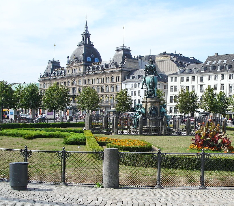 Our homeward route took us directly away from the Rosenborg Gardens straight down the main artery, Gothersgade, which eventually runs both sides of the canal in the Nyhavn area. Before reaching Nyhavn, Gothersgade runs past the largest public square in Copenhagen, Kongens Nytov (“Kings New Square”). It was part of Christian V’s plan to develop the city’s defences in connection with all the other work his predecessor had done with the citadel just down the road. Christian V’s equestrian statue is the centrepiece of this Square.